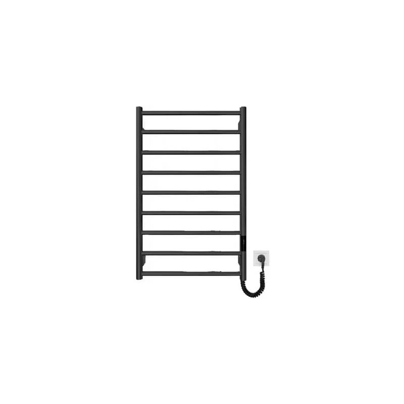 Електросушарка для рушників побутова Урбан-I 810x500-85мм. Обладнана таймер-регулятором та конектором для підключення в розетку з будь-якого боку. Сумісна з комплектом прихованого підключення. Має 9 ребер та стояки з круглої труби.