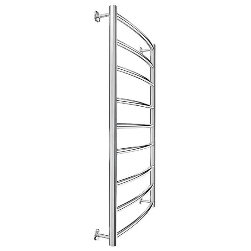 Полотенцесушитель "Марио" Классик 900х530/500. Размеры: высота – 900 мм, ширина – 530 мм, глубина 105 мм, межцентровое расстояние для подключения – 500 мм, диаметр подключения G1/2”. Варианты подключения: нижнее, диагональное и боковое. Количество ребер – 9, стояки из круглой трубы. Изготовлен из полированной нержавеющей стали без хромирования.
