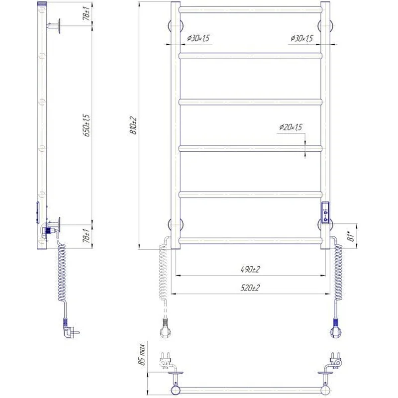 Электросушитель для полотенец бытовой Классик F НР-I 800х530/75 TR K. Оснащен таймер-регулятором и коннектором для подключения в розетк...