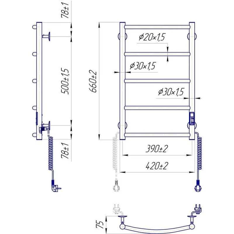 Электросушилка для полотенец Классик НР-I 650х430 / 75 TR К. оборудована таймер-регулятором и коннектором для подключения в розетку с л...