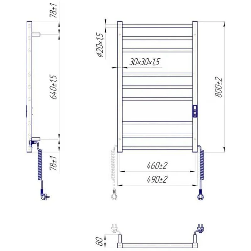 Электросушка для полотенец бытовая Премиум Классик-I 800х500/80 TR К. Оснащена таймер-регулятором и коннектором для подключения в розет...