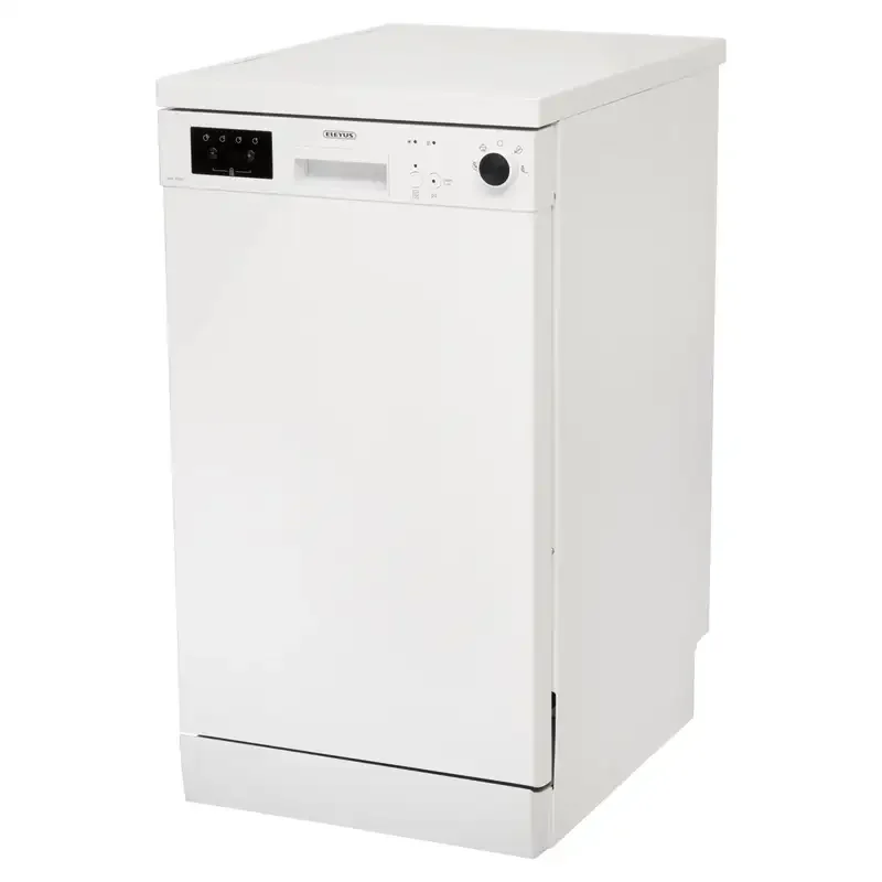 ELEYUS DWF 45024 – окрема посудомийна машина, яку можна розмістити в будь-якому зручному місці. Вміщує до 10 комплектів посуду, має 4 основні програми, відкладає запуск до 19 годин і економно працює завдяки класу енергоефективності А++.