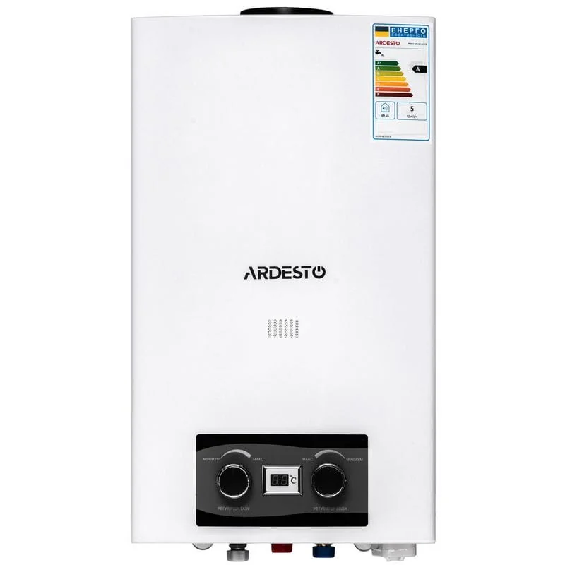 Главным преимуществом газовой колонки ARDESTO серии X2 мощностью 20 кВт является нагрев воды непосредственно перед подачей в смеситель, без накопления в емкости. Производительность устройства составляет 10 л/мин, а мощность – 20 кВт. Основным элементом газовой колонки является горелка. У моделей ARDESTO серии X2 он изготовлен из нержавеющей стали. Зажигание горелки электронное от батареек (2 шт. × LR20), их нужно приобрести отдельно. Вторым, не менее важным элементом газовой колонки является теплообменник. Водонагреватели ARDESTO серии X2 оснащены теплообменниками из бескислородной меди (2 кг) – металла, который имеет высокую теплопроводность, устойчив к коррозии и при нагревании не выделяет вредных веществ. Колонка атмосферная, в соответствии с конструкцией, имеет камеру сгорания открытого типа, а для отвода отходящего газа требует наличия полноценного дымохода. Энергоэффективность устройства относится к классу А.