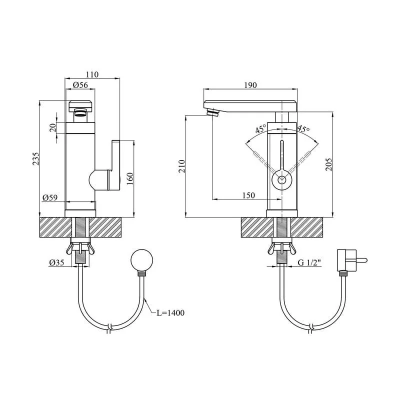 высота смесителя 210 мм