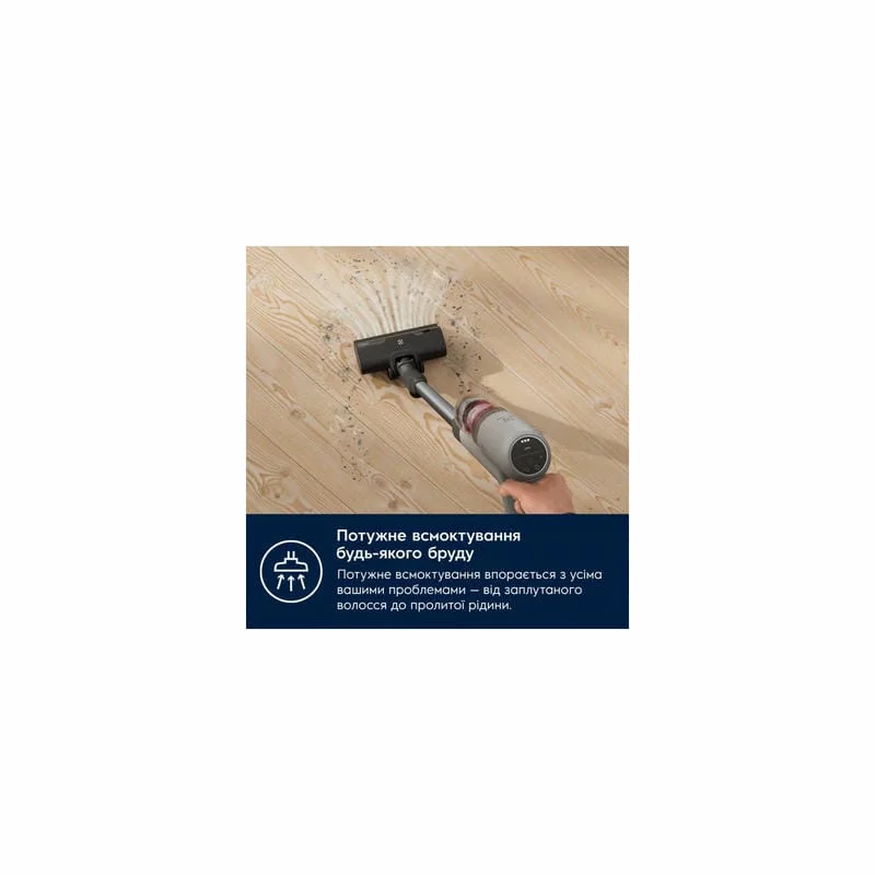 Мощный высокоскоростной двигатель с моторизованной насадкой позволяет очистить пол от пыли до 99,9%. Наш компактный и мощный высокоскоростной двигатель обеспечивает втрое большую мощность всасывания для наилучших результатов на любой поверхности.