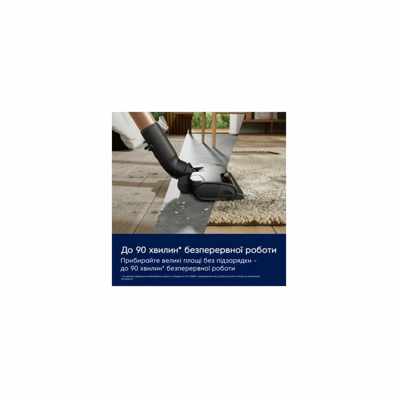 До 90 минут непрерывной уборки с помощью ручного устройства. Легко убирайте площадь до 132 кв. м благодаря аккумулятору высокой емкости без остановки подзарядки.
