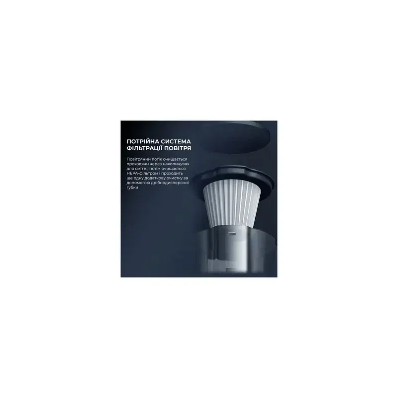 Комплексная трехступенчатая система фильтрации воздуха состоит из пылесборника, HEPA-фильтра и фильтрующей губки, она постепенно очищает проходящий сквозь нее воздух, задерживая даже мельчайшие частицы пыли.