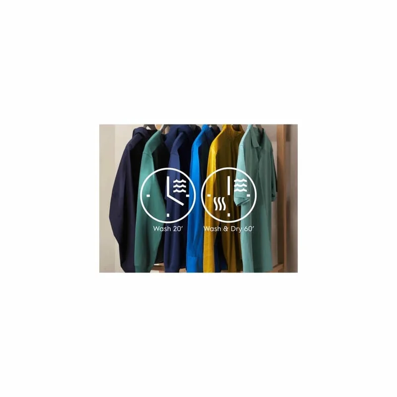 OneGo 20/60 мин позволяет стирать и сушить небольшие смешанные вещи всего за час или выполнять стирку всего за 20 минут. Выбирайте быстрый и удобный уход за одеждой, когда спешите.