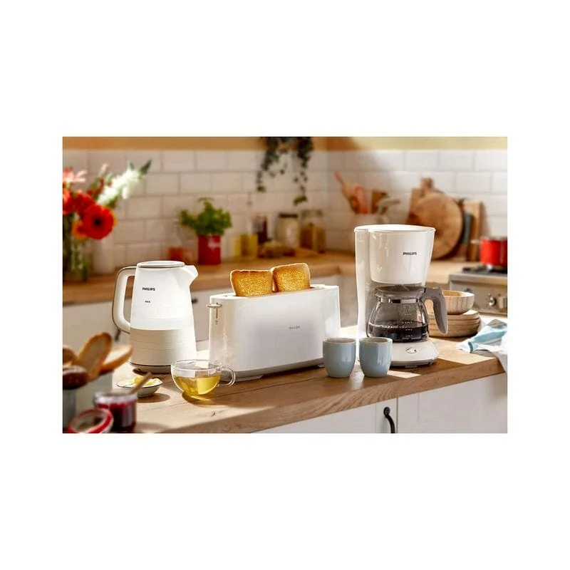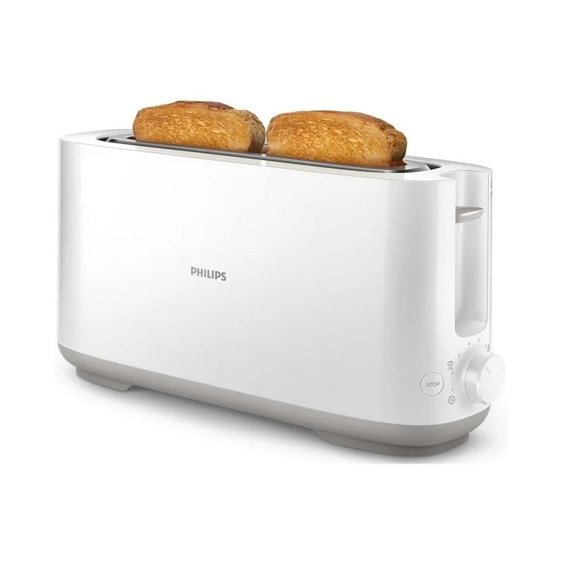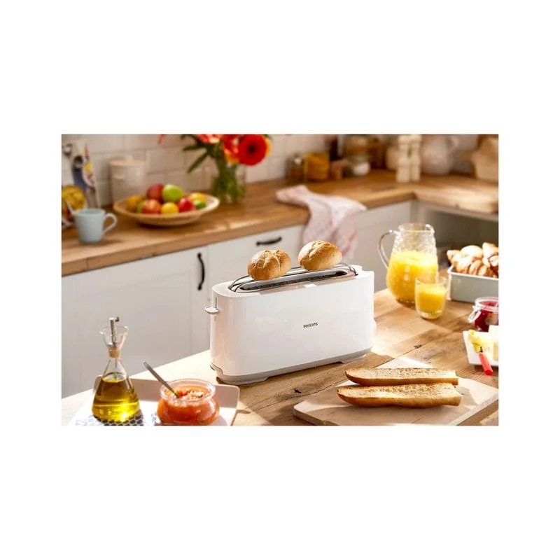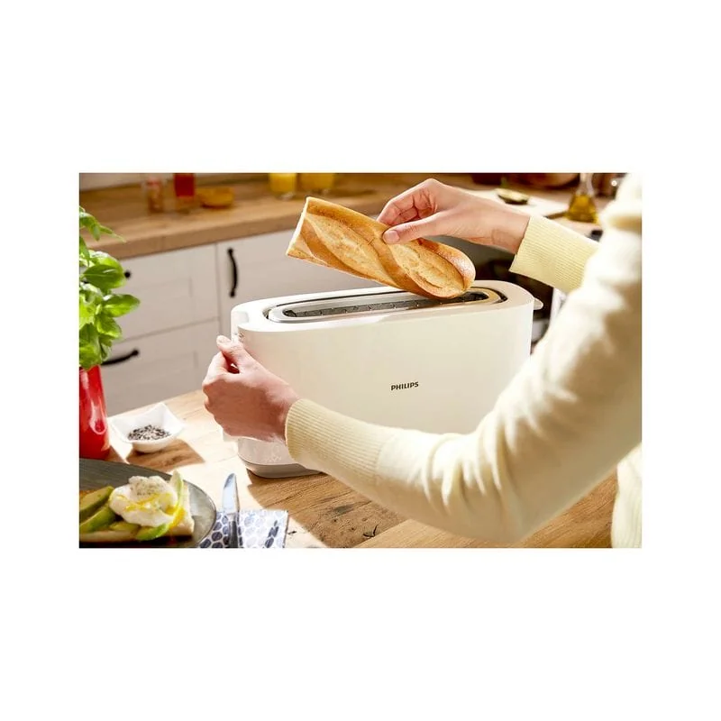 Тостер с длинным отделением и 8 режимами для равномерного поджаривания любого хлеба. Встроенная подставка для подогрева булочек позволит греть любую выпечку — от роллов до круассанов.