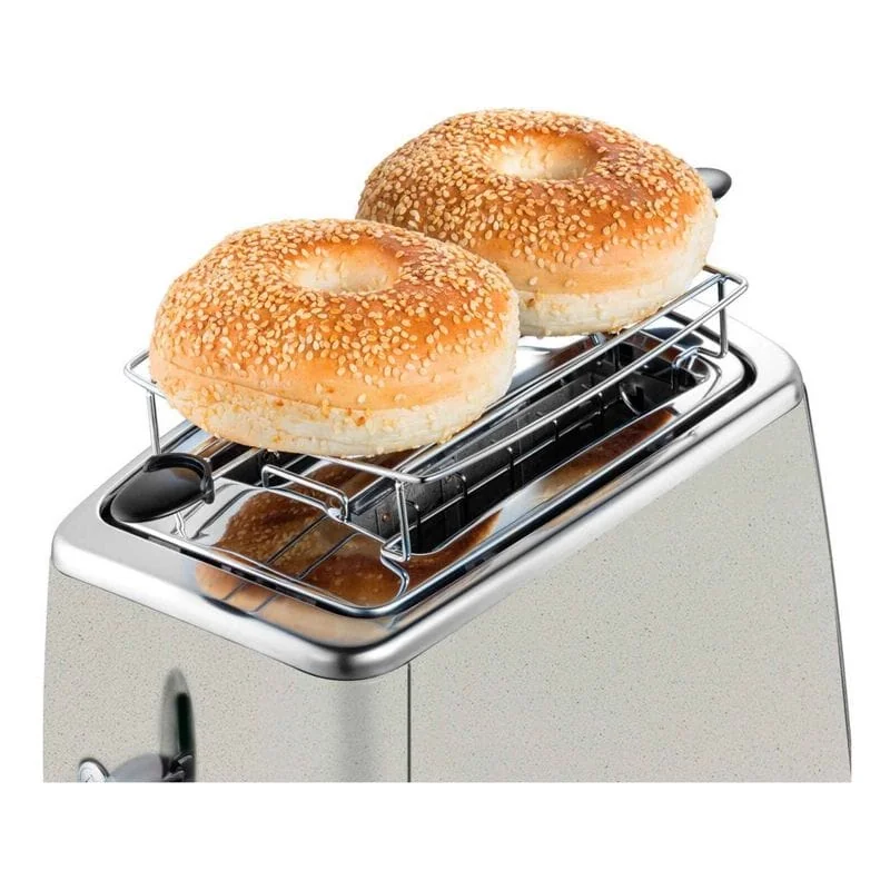 Тостер Russell Hobbs 26970-56 Luna Stone 2 Slice станет красивым и функциональным дополнением Вашего кухонного интерьера, таким тостером невероятно приятно пользоваться! Размер слотов составляет 140 на 40 мм, поэтому Вы сможете использовать как тонкие, так и толстые ломтики. Функция автоматического центрирования обеспечит равномерность приготовления. К вашим услугам 6 уровней поджаривания, выбирайте, - хотите ли Вы лишь немного подсушить тост или довести его до хруста и хорошо подрумянить. Система "Lift and Look" позволит поднять ломтики и оценить степень их готовности, не прерывая работу прибора. Режим «Размораживание» даст возможность использовать заготовки из морозилки. В комплект входит специальная съёмная подставка, на которой Вы подогреете булочки, круассаны и другую выпечку.