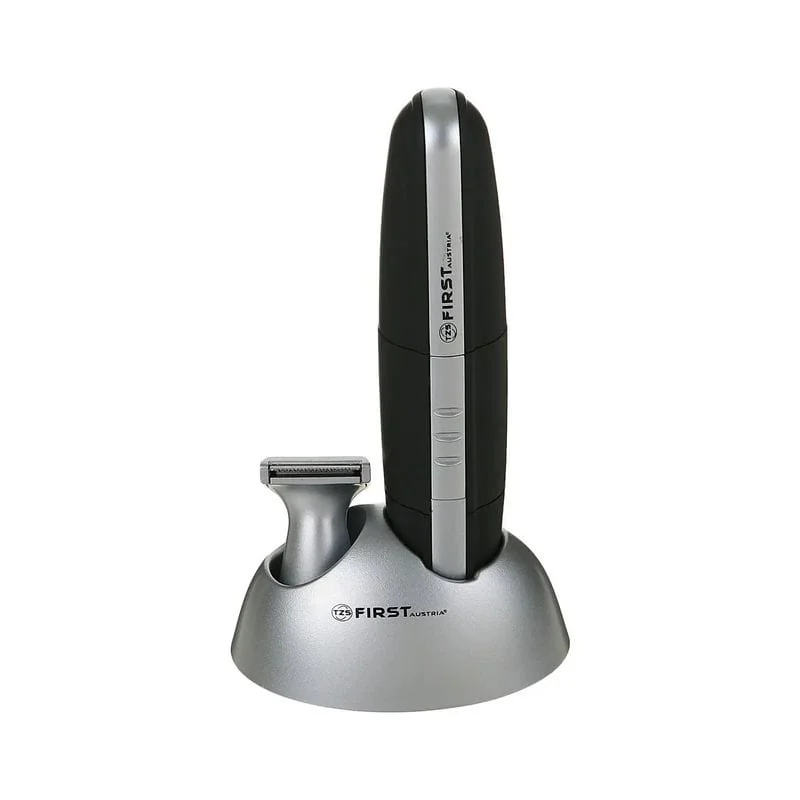 First 5680-2 – это универсальное устройство, сочетающее в себе триммер для носа и ушей и точный триммер для моделирования бороды. Точечная подсветка области бритья позволяет добиться максимального результата. Триммер работает в беспроводном режиме всего от 1 батарейки АА. Этот триммер водонепроницаем, поэтому вы можете использовать его в ванной или других помещениях с повышенной влажностью. Наличие в комплекте подставки избавляет от необходимости поиска специального места хранения устройства.