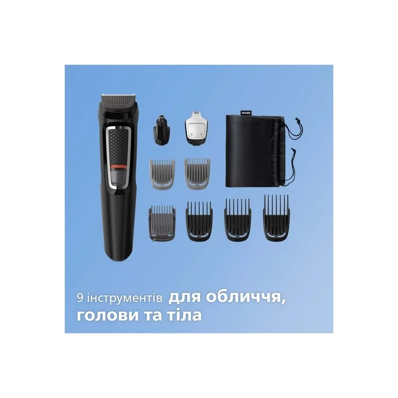 5 противоударных насадок2 насадки для щетины (1, 2 мм), 2 насадки для бороды (3,5 мм) и 1 насадка для волос (9 мм). Для создания идеальной щетины выберите минимальную установку длины триммера.