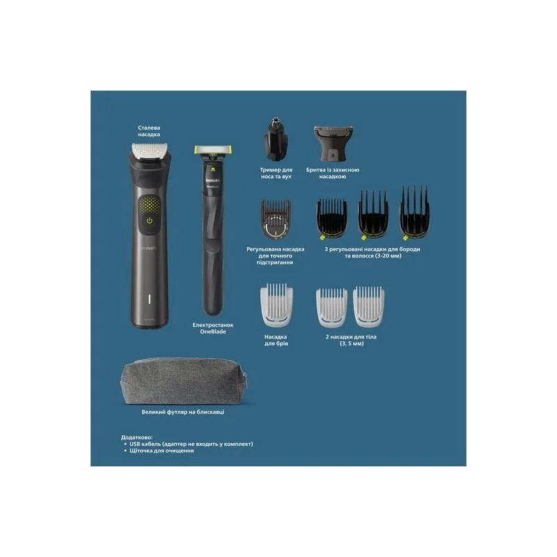 Этот универсальный триммер с разными насадками предлагает 27 настроек длины от 0.2 до 20 мм для равномерного подстригания.