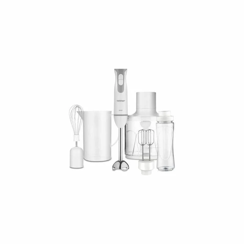 Ручной блендер Zelmer – это компактное, эргономичное и многофункциональное устройство, которое стоит иметь в своей кухне. Имея максимальную мощность 800 Вт, у вас есть помощник по дроблению и смешиванию ингредиентов. Вы можете выбрать один из 2 уровней регулировки скорости, что позволяет контролировать работу устройства. Ручной блендер Зелмер ZHB4555S – это также широкий выбор аксессуаров, упрощающих вашу жизнь. В набор входит мерная чашка 0,8л, венчик для взбивания, емкость для измельчения на 450мл, спортивная бутылка для воды 0,6л и насадка для смешивания.