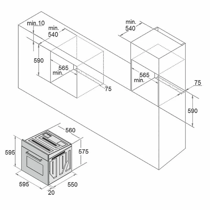 - Встраиваемый независимый - Дизайн TECHNO - Фасад из закаленного стекла с нержавеющими декоративными полосами - Электронные поворотные переключатели - Фурнитура металл - Разборная дверца - Стеклянная ровная внутренняя поверхность дверцы