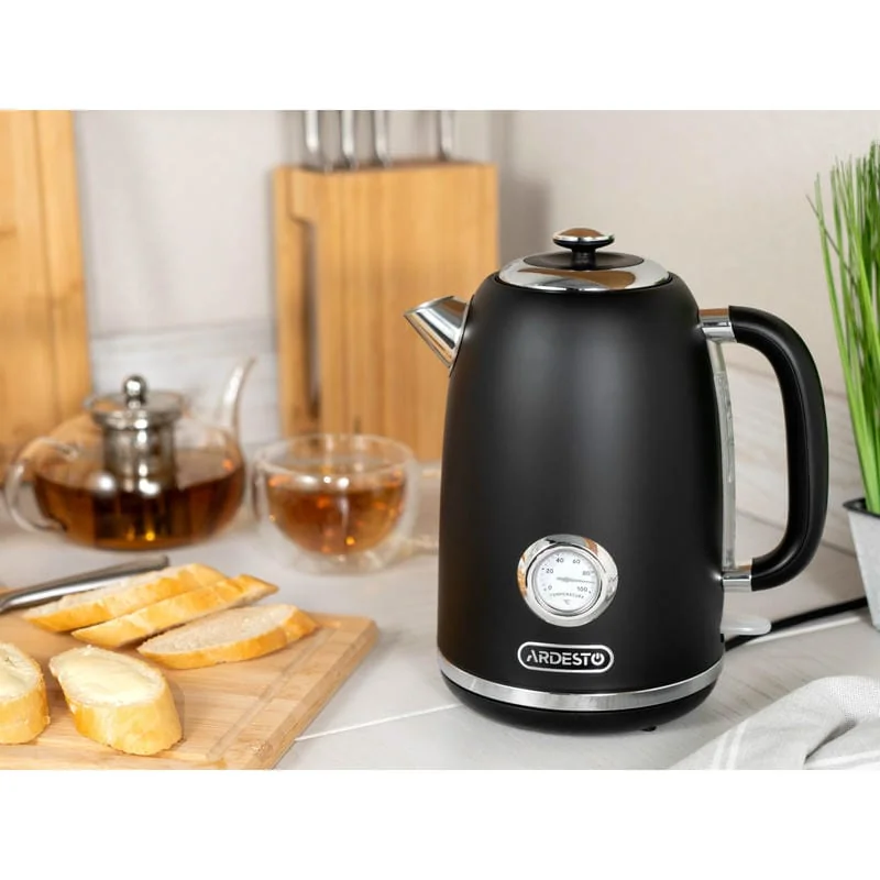 Чайник Ardesto EKL-F410 отличается простым элегантным дизайном. Он кипятит до 1,8 литра воды, а благодаря индикатору количества вы можете набрать ровно столько воды, сколько вам нужно. Носик имеет такую форму, чтобы заливка была точной и без ненужного разбрызгивания воды. Вы можете поставить чайник на подставку с поворотом на 360 ° с любой удобной для вас стороны. Благодаря скрытому нагревательному элементу чайник можно легко и безопасно чистить. Встроенный механический термометр с градированием позволит подогреть воду до нужной температуры и приготовить правильно чай. Он имеет тройную систему защиты. Защищает от перегрева, сухого кипячения и автоматически отключается после закипания воды.