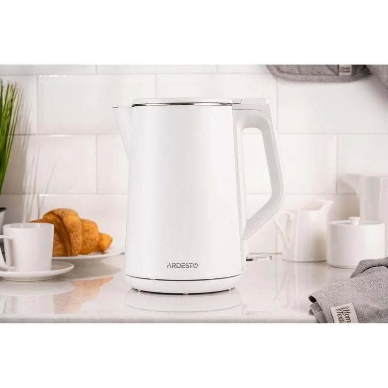 Элегантный электрочайник ARDESTO EKL-X50 имеет объем 1,7 л, оптимален для семьи из 4 человек. Корпус минималистского дизайна с двойными стенками. Оснащен скрытым нагревательным элементом, что гарантирует длительный срок службы. При мощности 1850 – 2200 Вт можно вскипятить воду в чайнике за несколько минут. Безопасное устройство оснащено функцией Strix-контроля и выдерживает до 12 000 циклов закипаний. В комплектации – беспроводная база с вращением на 360°.