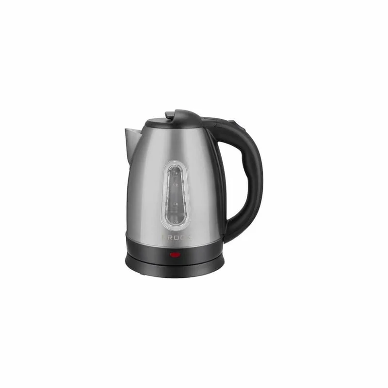 Электрочайник, мощность 1500 Вт, объем 1.8 л, индикатор уровня воды, светодиодная подсветка, тройная система безопасности, вращение на базе на 360º, отсек для шнура, корпус из нержавеющей стали.