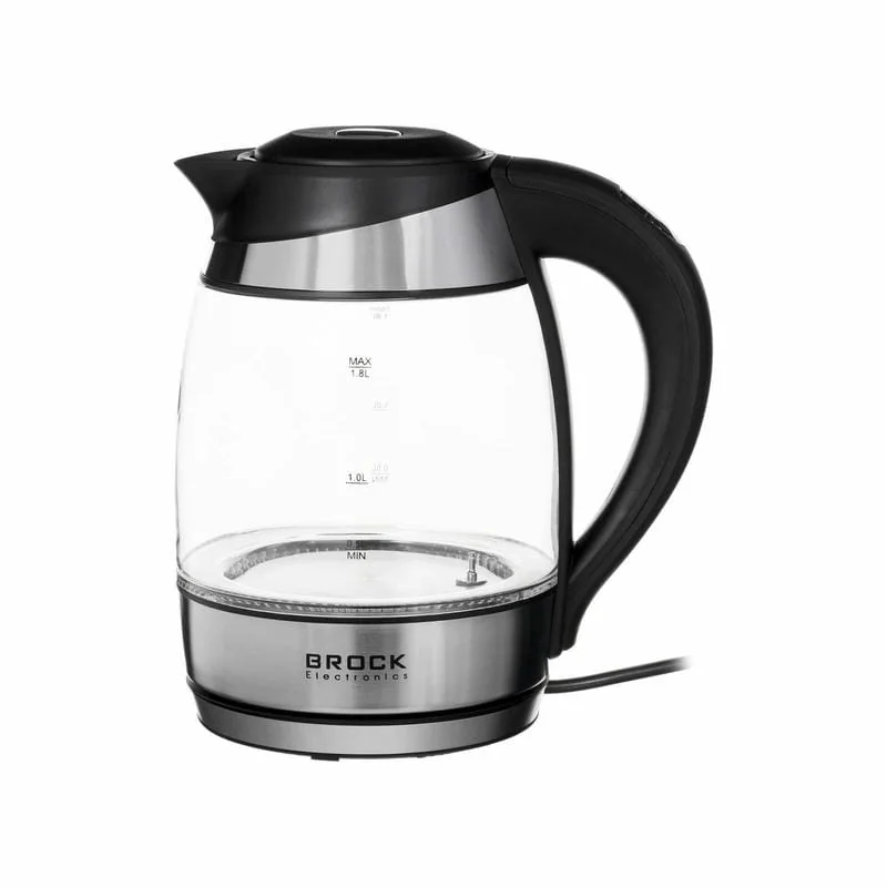 Электрочайник WK 2106 LL от Brock Electronics мощностью 1850 – 2200 Вт имеет 3 режима работы, имеет корпус из боросиликатного стекла и устойчив к загрязнениям. Электрочайник Brock Electronics – чрезвычайно безопасное устройство благодаря тройной системе безопасности, которая защищает от перегрева при отсутствии воды в кувшине и автоматически отключается при снятии с подставки или достижении точки кипения. Встроенный нагреватель сделан из нержавеющей стали, а сам чайник имеет емкость 1,8 л. Модель WK2106LL также имеет отделение шнура питания на основании, которое можно поворачивать на 360°. Все это влияет на удобство использования. Следует отметить, что крышка чайника легко открывается нажатием кнопки в верхней части ручки, на которой также установлен выключатель.