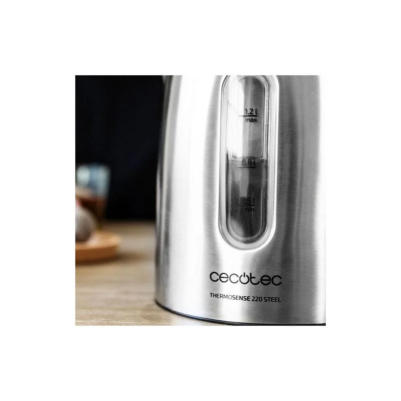 Cecotec ThermoSense 350 Clear 01510 сделан из качественных материалов, пластиковый корпус не имеет вредных компонентов. Максимальная мощность чайника составляет 2200 Вт, такой показатель мощности помогает устройству нагреваться за очень короткий срок. Объем резервуара для воды составляет 1,5 литра. Присутсвует кнопка автоматического открывания.