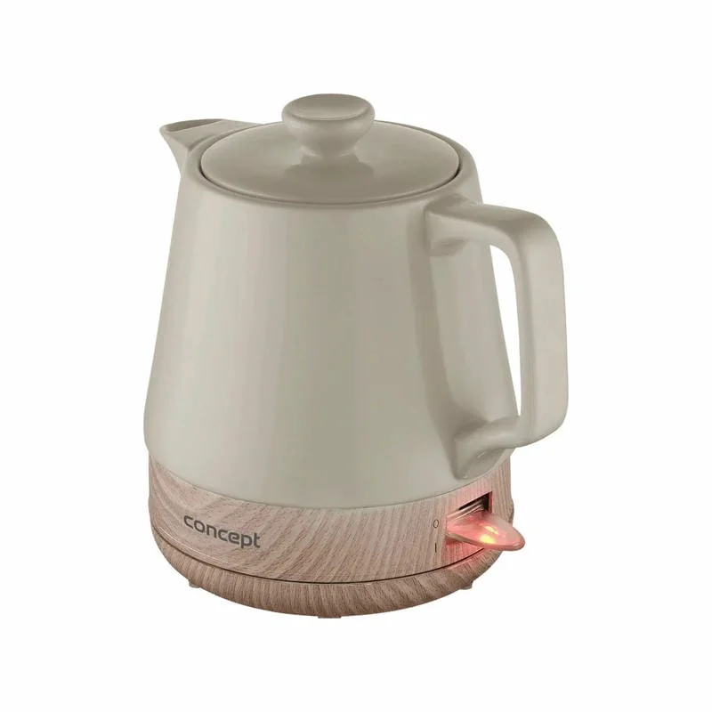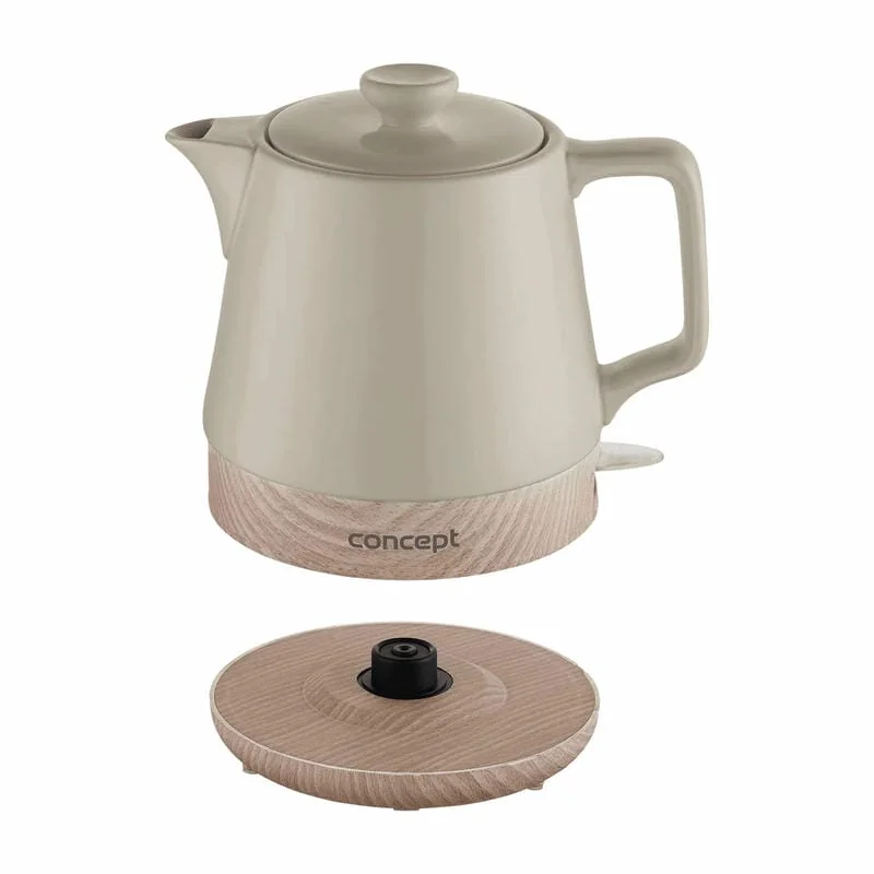 Электрический чайник RK0061 поражает с первого взгляда своим уникальным дизайном, в котором стильно совмещены керамика и дерево. Преимуществом является то, что вы можете использовать его как классический чайник и подавать любимый напиток прямо на стол. Он имеет объем 1л, поэтому подходит для небольших семей.
