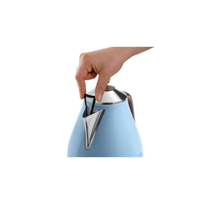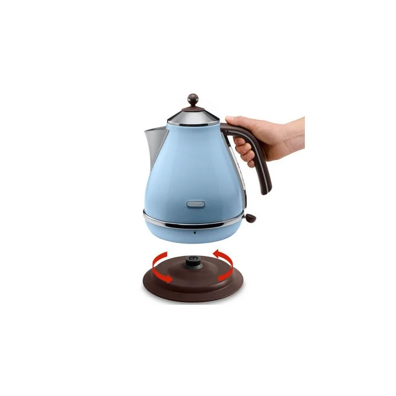 Электрочайник DELONGHI KBOV2001 дизайнерской серии Vintage Icona станет украшением вашей кухни. Необычная, пингвинообразная форма выглядит изысканно и привлекательно. Прибор украсит вашу кухню и будет долго радовать взгляд. Металлический корпус имеет голубое покрытие. Украшен в нижней части узким хромированным пояском.