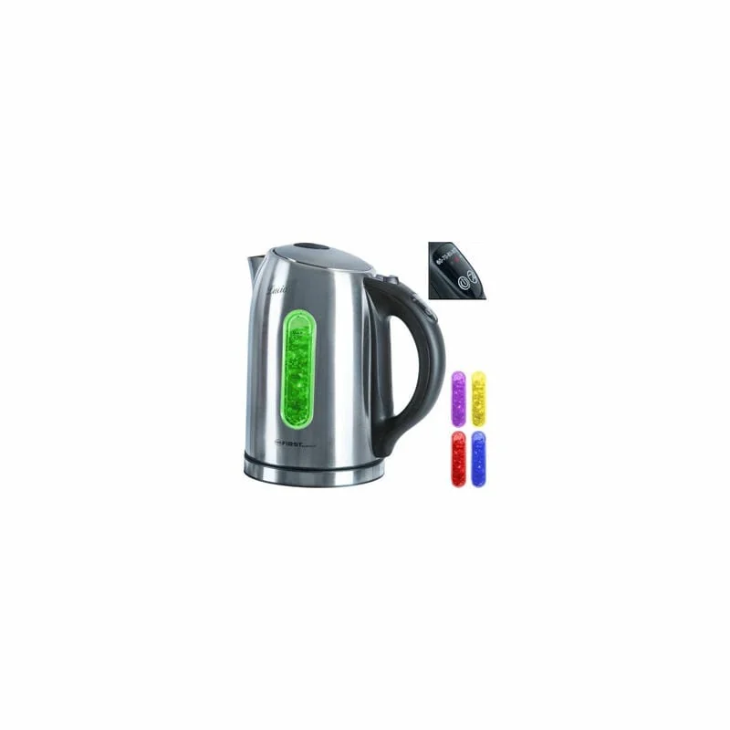Корпус электрочайника First FA 5411-0 изготовлен из нержавеющей стали. Металл более устойчив к высоким температурам, чем пластик, и не выделяет в воду токсичные вещества. Кроме того, он крепче, и выглядит более технологично. В целом, данной модели характерен стильный и современный дизайн, который не только впишется в интерьер Вашей кухни, но и может стать важным элементом ее декора. Эргономичная ручка электрочайника сделана из термостойкого пластика черного цвета. На ней расположена кнопка включения/выключения прибора, а также сенсорное управление термостатом. С наличием термостата, появляется возможность подогревать воду до заданной температуры (60°, 70°, 80° и 90°), а также поддерживать ее на протяжении необходимого времени. Для индикации работы электрочайника, предусмотрена встроенная светодиодная подсветка.