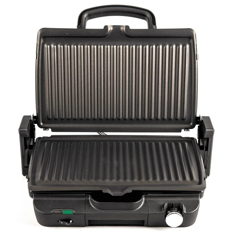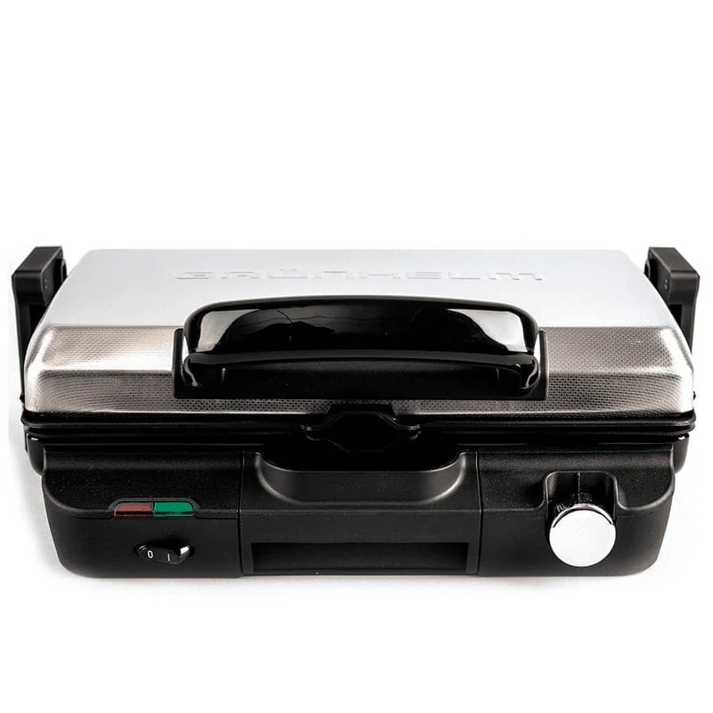 Электрогриль Grunhelm G1866 жарит мясо, картофель и рыбные стейки, подогревает продукты, готовит горячие бутерброды и овощи. За счет антипригарного покрытия панелей жарить в гриле можно практически без масла ‒ блюда не пригорят и будут менее калорийными, полезными и вкусными.