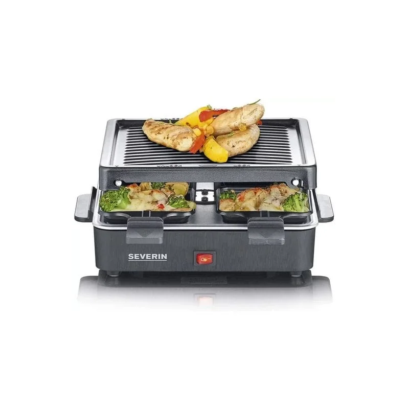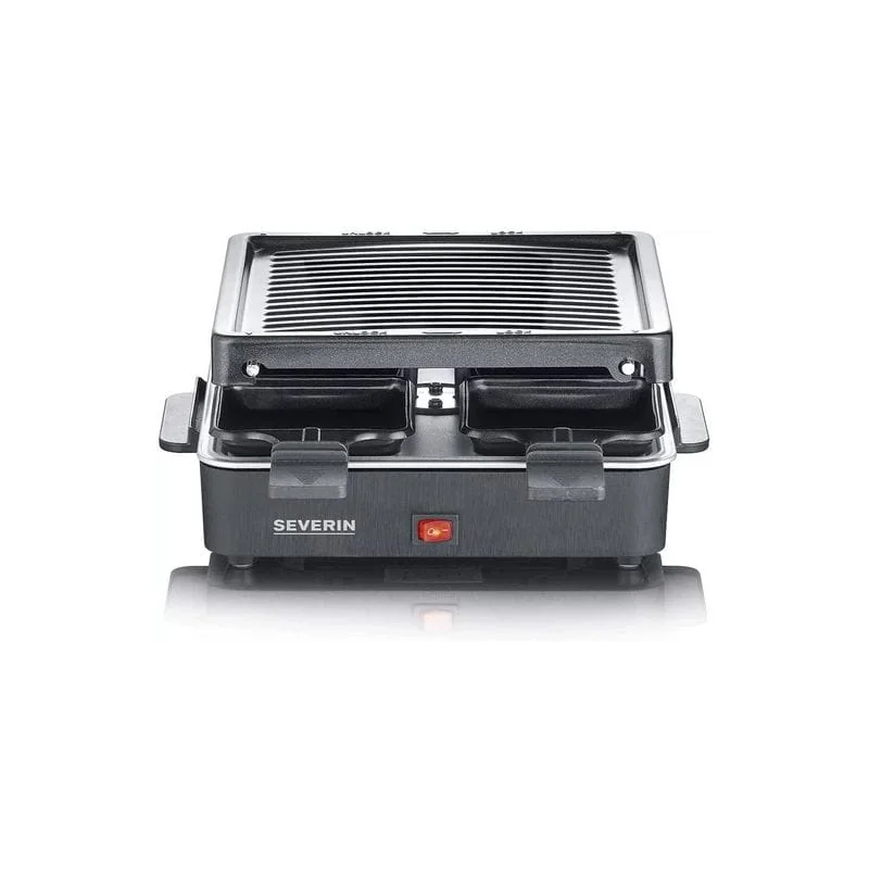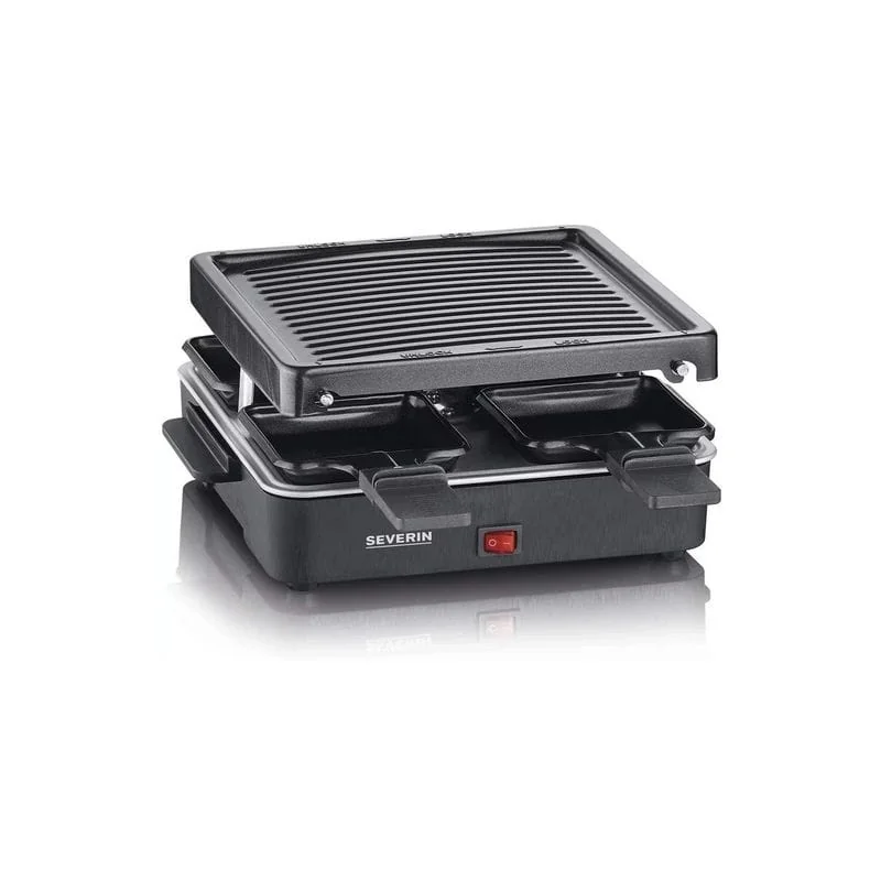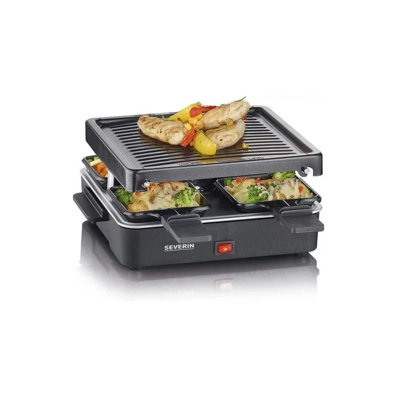 Электрический раклет-гриль Severin RG 2370 очень прост в использовании. Он поставляется с 4 мини-сковородками, поэтому вы можете готовить одновременно до 4 порций. Ручка покрыта термостойким пластиком для предотвращения ожогов.