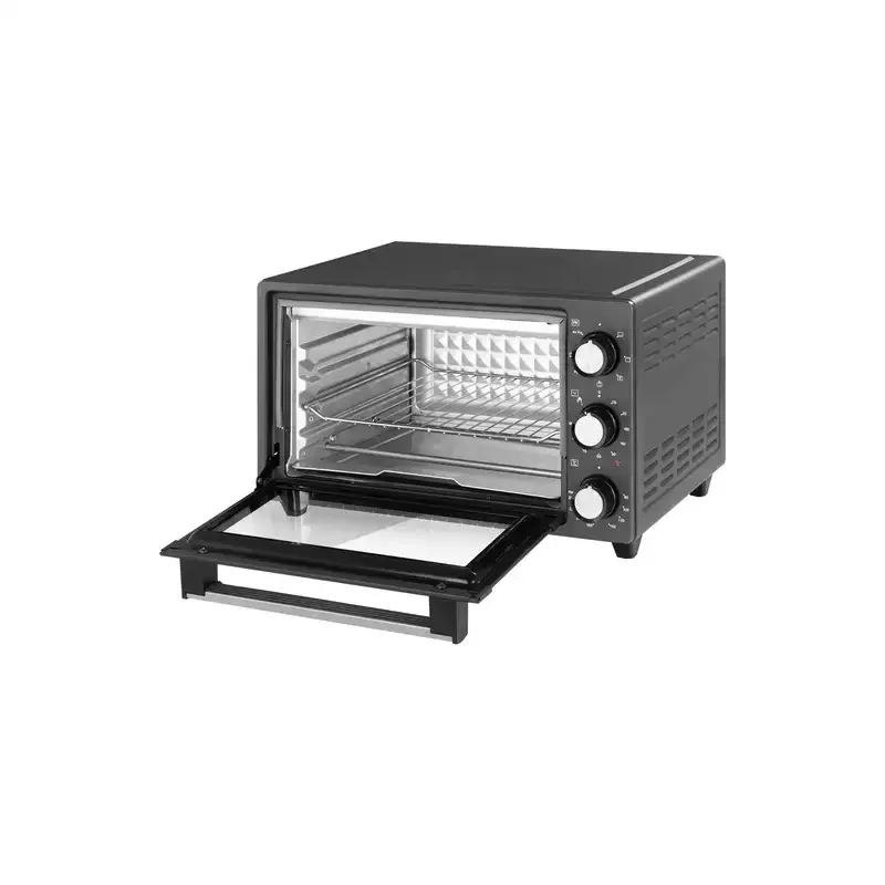 Электрическая духовка, с аэрофритюрницей, мощность 1500 Вт, объем - 20 л, механическое управление, термостат 80-250ºС, таймер 90 мин, гриль, 7 функций приготовления, подсветка камеры, оцинкованное внутреннее покрытие, дверь с двойным стеклом.