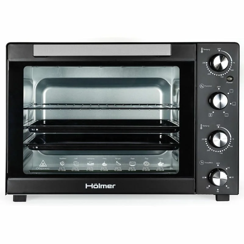 В комплект Hölmer HEO-162PCL входят два противня с антипригарным покрытием, противень для пиццы, решетка для гриля, а также съемная ручка для удобного перемещения противня. Такая комплектация делает процесс приготовления еще более гибким, ведь можно выбрать самые удобные аксессуары для различных видов блюд.