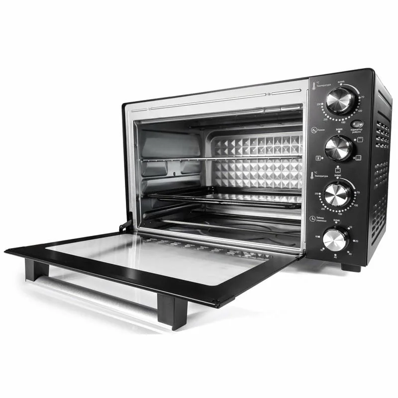 Механическое управление позволяет быстро выбрать один из режимов работы – верхний или нижний нагрев, комбинированный режим или конвекционный режим, благодаря которому блюдо равномерно пропекается со всех сторон. Таймер до 60 минут с функцией автовыключения и звуковым сигналом придает удобство использования и обеспечивает полный контроль над процессом.