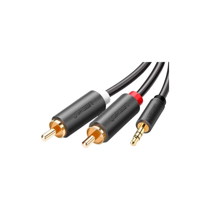Стереокабель UGREEN 3,5 мм (штекер для наушников 1/8 дюйма) на 2 RCA (правый/левый) идеально подходит для подключения штекера 3,5 мм к разъему для наушников вашего устройства или компьютера, а 2 RCA к левому и правому дополнительным входам на вашей звуковой системе.