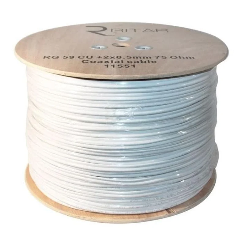 Кабель телевизионный Ritar RG-59, 0,81 мм.CU, 64x0.12m CCA экран,+2*0.5power, white PVC (RT-W305-RG59+2x0.5mm)