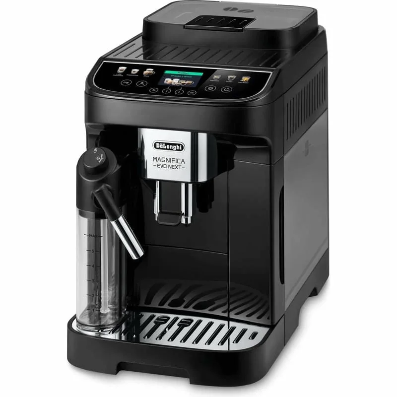 Кофемашина De'Longhi Magnifica Evo Next сочетает в себе инновационные функции с простотой использования, чтобы каждый день радовать вас чашкой идеально сваренного кофе. Оснащенная интуитивно понятной панелью управления с 6 цветными сенсорными кнопками, она обеспечивает удобный доступ к меню из 10 напитков, включая эспрессо, допио+, лонг, капучино и латте макиато.