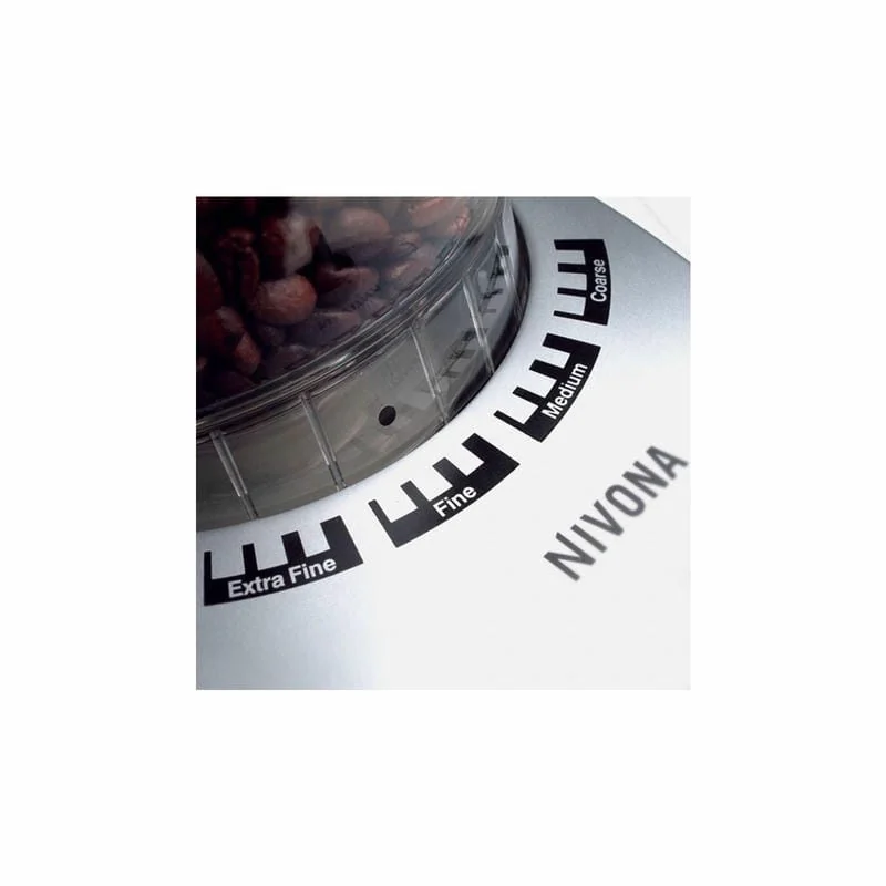 Для каждого способа приготовления кофе и под любой сорт зерен подбирают соответствующую мелкость помола. Вы сможете установить необходимый уровень благодаря вращению контейнера. Шкала имеет 16 делений, плавная регулировка позволяет установить степень помола от мельчайшего (extra fine) до большого (coarse). Если у вас есть кофейня Nivona 130 CafeGrano, вы можете измельчить кофе прямо в рожок.