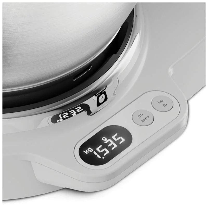 ХАРАКТЕРИСТИКИ Преимуществ в кухонной машине Kenwood KVC 65.001 WH Titanium Chef Baker множество, однако, перечислим вам самые основные. Корпус прибора и все его детали выполнены из прочнейшего металла, в лаконичном серебристом и белом цветах. На передней панели внизу кухонной машины находятся встроенные весы с дисплеем, благодаря которым, вы можете регулировать количество и вес ингредиентов в чаше. К слову о чаше, она имеет объём в целых 7 литра, чего достаточно для приготовления как большого количества продуктов, так и на несколько персон. Мощность у данной машины составляет 1200 Вт, чего вполне достаточно для полноценного использования всех 8+ импульсивного режимов и 3 приводов для насадок.