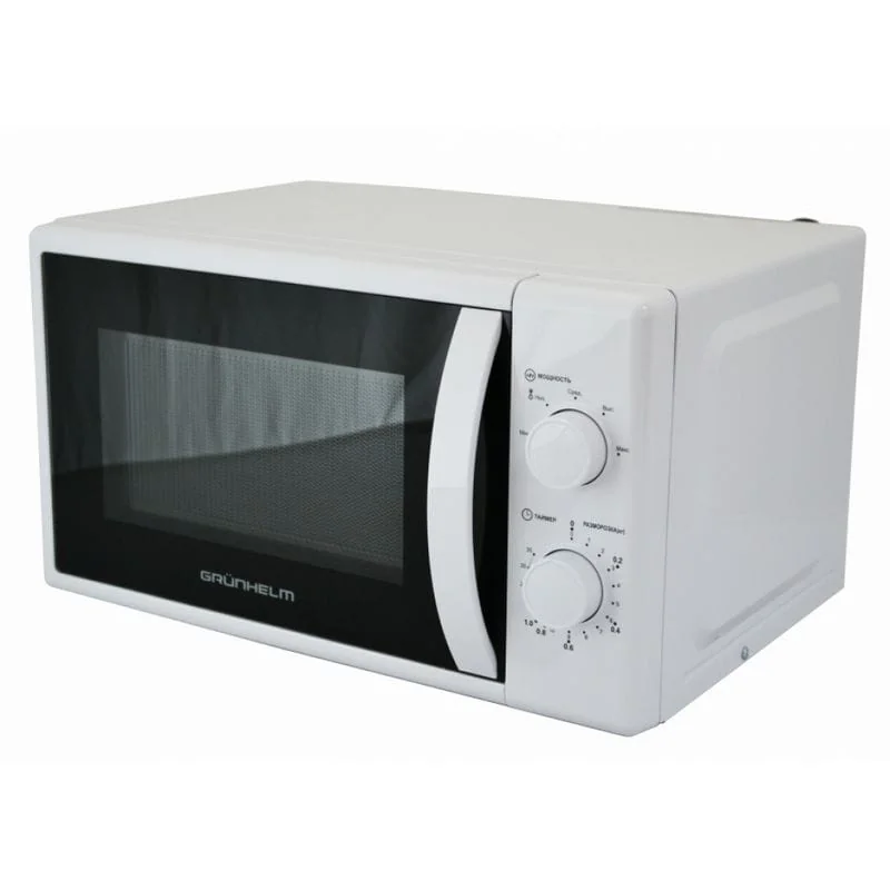Микроволновая печь Grunhelm 20MX720-W сделана в базовом варианте, который подойдет для использования в любых интерьерных стилях. За счет того, что корпус выполнен в белом цвете, внедрение в интерьер пройдет максимально легко. Уход за техникой достаточно прост и не требует особых ухищрений. Размеры позволят поместить устройство на небольшом участке стола или кухонной тумбы. Внутри довольно много пространства - 20 л полезного объема.