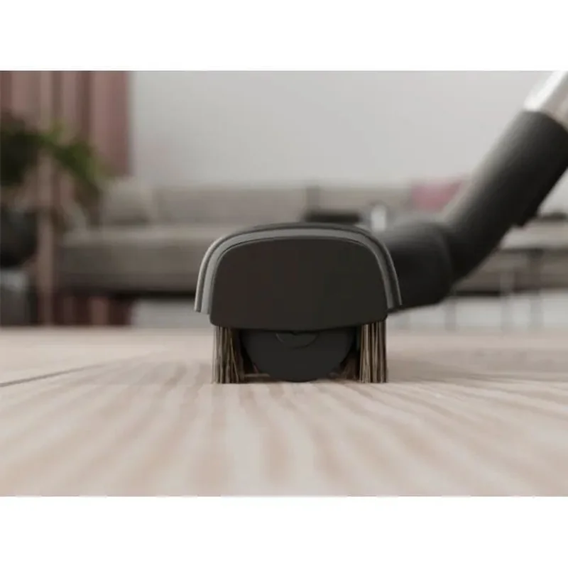 Мягкая щетина в передней и задней частях насадки в сочетании с мягкими колесиками обеспечивают максимально деликатную очистку напольных покрытий.