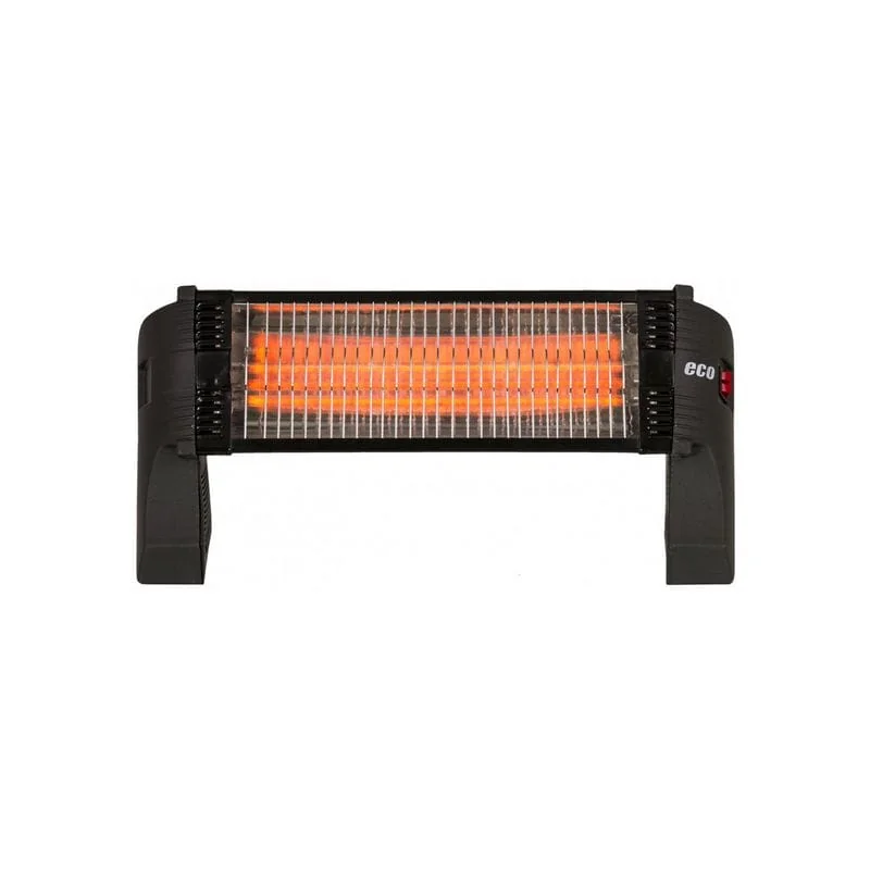 Инфракрасный обогреватель имеет компактные размеры. Он помещен в стальной корпус, чаще всего черного цвета, с пластиковыми ножками. Устанавливать его можно только на пол. Переносить с места на место это устройство