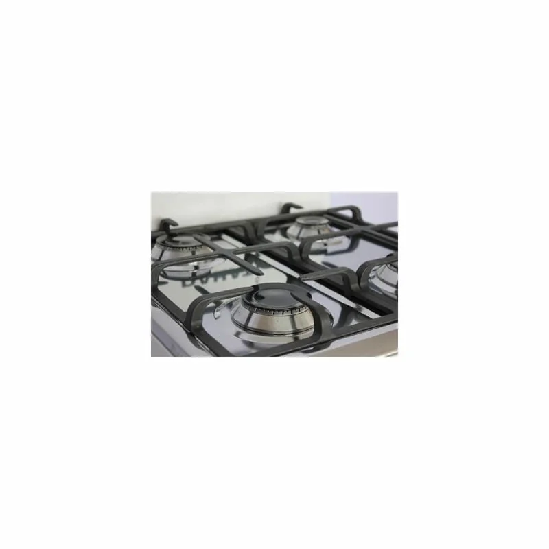 Нержавіюча робоча поверхня полегшить догляд за плитою та порадує довговічністю. Для приготування Ваших улюблених страв плита оснащена різними пальниками: 1 пальник підвищеної потужності, 2 середньої потужності та 1 мала потужність. Грати робочої поверхні виконані зі сталі 6мм і покриті чорною емаллю. Для захисту стіни плита оснащена білим емальованим бортом.