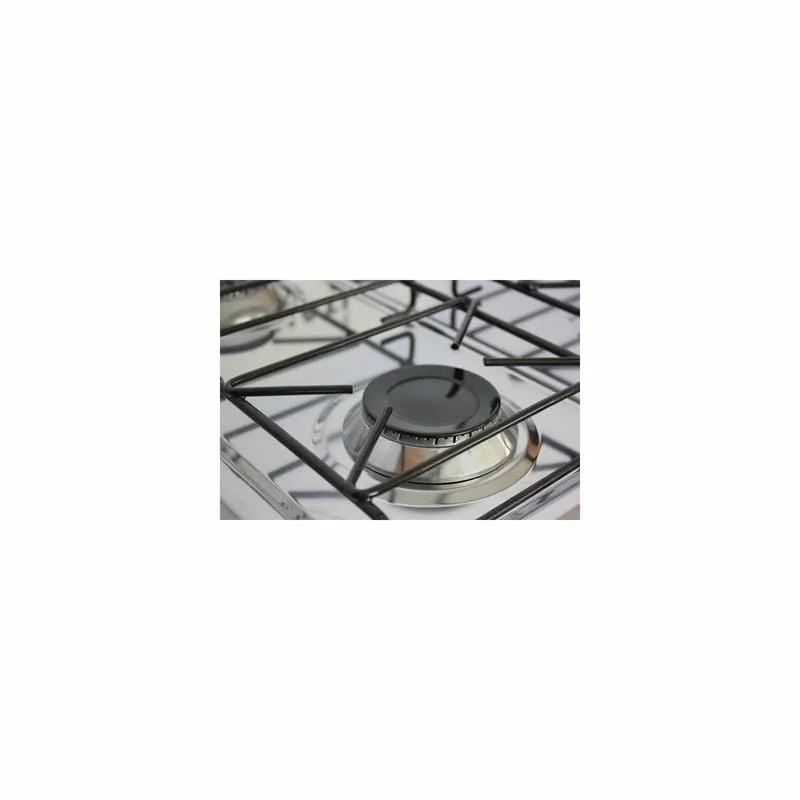 Нержавіюча робоча поверхня полегшить догляд за плитою та порадує довговічністю. Для приготування Ваших улюблених страв плита оснащена різними пальниками: 1 пальник підвищеної потужності, 2 середньої потужності та 1 мала потужність. Грати робочої поверхні виконані зі сталі 6мм і покриті чорною емаллю. Для захисту стіни плита оснащена білим емальованим бортом.