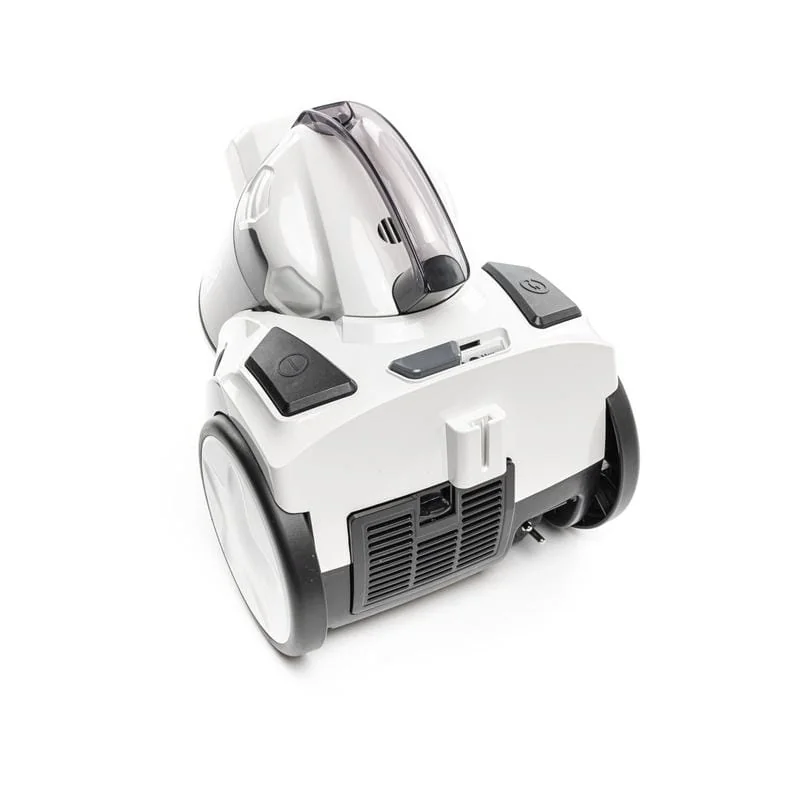 Легкая и компактная конструкция позволяет хранить пылесос, не занимая много места в вашем доме. Благодаря малому весу и компактному размеру прибор можно легко переносить и перемещать на колесиках во время уборки. Легкое извлечение контейнера осуществляется легким вращением за ручку контейнера. К тому же контейнер не имеет углов, в которых может застрять грязь, это делает процесс очистки намного проще.