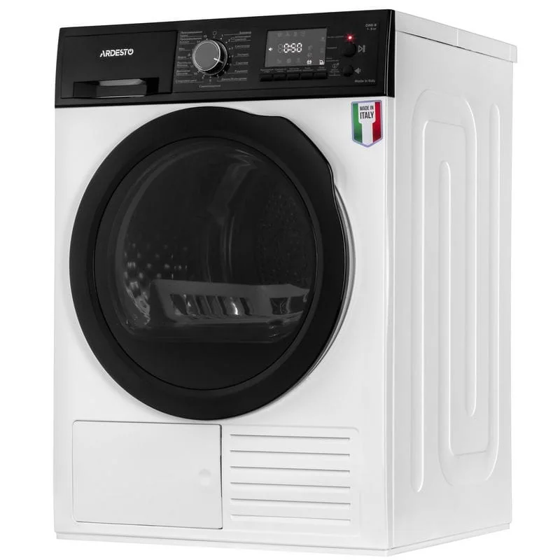 Сушильная машина ARDESTO Bianco Vero может похвастаться прогрессивной системой конденсационной сушки с помощью теплового насоса Heat-Pump с хладагентом R290, высокой емкостью барабана, а также низким электропотреблением, соответствующим классу A++. Сушка оборудована мощным двигателем PSC. Устройство выполняет 15 программ сушки: хлопок, интенсивная сушка, синтетика, экспресс, рубашки, полотенца, джинс/цветная, самоочищение, спортивные принадлежности, деликатная сушка, постельное белье, шерсть, микс, программирование (горячее), программирование (холодное). Вдобавок, есть отложенный старт.