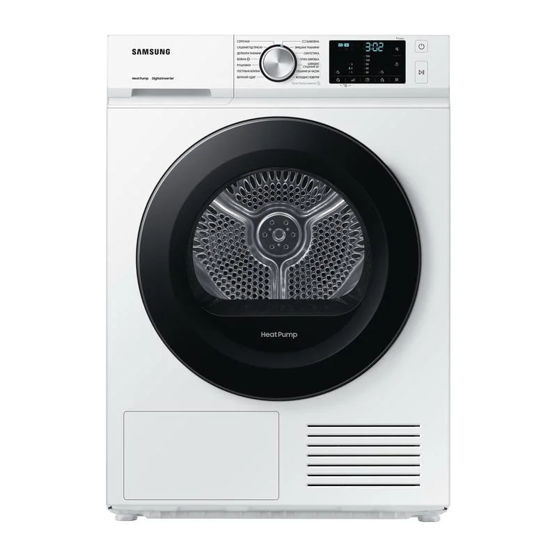 Сушильная машина с тепловым насосом, загрузка 9 кг, быстрая сушка, предотвращение сминания, подсветка барабана, Air Wash, система AI Control, инверторный двигатель.