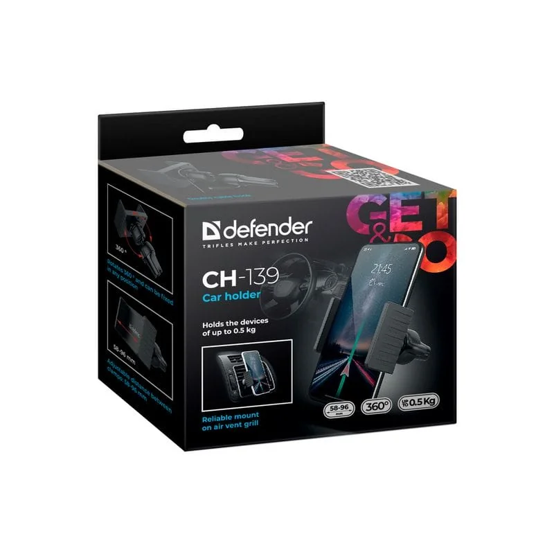 Универсальный автодержатель Defender CH-139 58-96 мм, на решетку вентиляции (29139)
