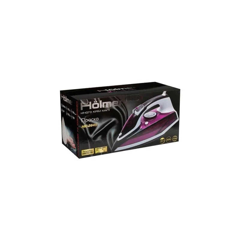 Множество технологии не только облегчают работу, но и делают ее безопаснее Покупая утюг Holmer HIC-2645, можете не беспокоиться за функциональность и безопасность, потому что это устройство имеет большое содержание хороших и безопасных функций, а именно: удобная функция, “Антикапля”, которая не позволяет, чтобы хоть одна капля попала на ткань. Технология “Вертикальный пар”, поможет очень легко отпаривать деликатные ткани, что есть очень важном в глажке платьев или костюмов. Функция “Спрей”- разбрызгивание воды, что поможет вам хорошо и легко разгладить любые складки. Так же безопасность на первом месте, поэтому в утюге есть уникальная функция “Автоматического выключения”, которое автоматически выключает устройство, если вы забыли о нём. Подошва устройства не оставляет лишних складок.