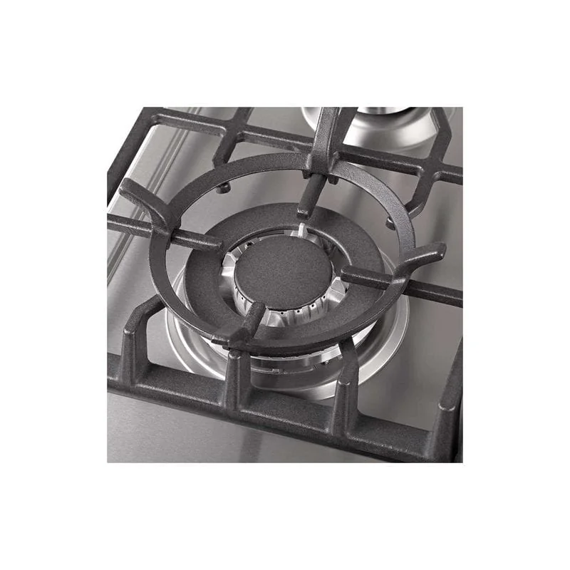 С виду чугунные решетки на варочной поверхности PFX 643 INOX LUXE выглядят легкими и ажурными. При этом они такие устойчивые и надежные, как решетки более массивной формы. Подключить поверхность можно как к магистральному, так и к балонному газу. Включение осуществляется с помощью автоматического электроподжига. За безопасностью работы следит система контроля утечки газа. Мощность самой большой конфорки, с тройным рядом пламени – 3,8 кВт.