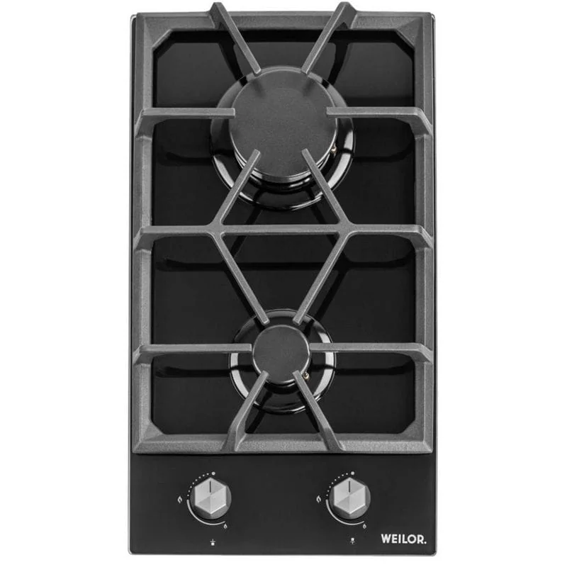 Weilor GG 304 – компактная варочная поверхность от компании Weilor, она является представителем функциональной линейки плит Domino, которые отличаются небольшими габаритами, чтобы поместиться в небольших городских квартирах или офисах. Плита оснащена двумя конфорками мощностью 2,9 кВт и 1 кВт. Представитель данной техники отличается практичным внешним видом, безопасным и простым управлением.