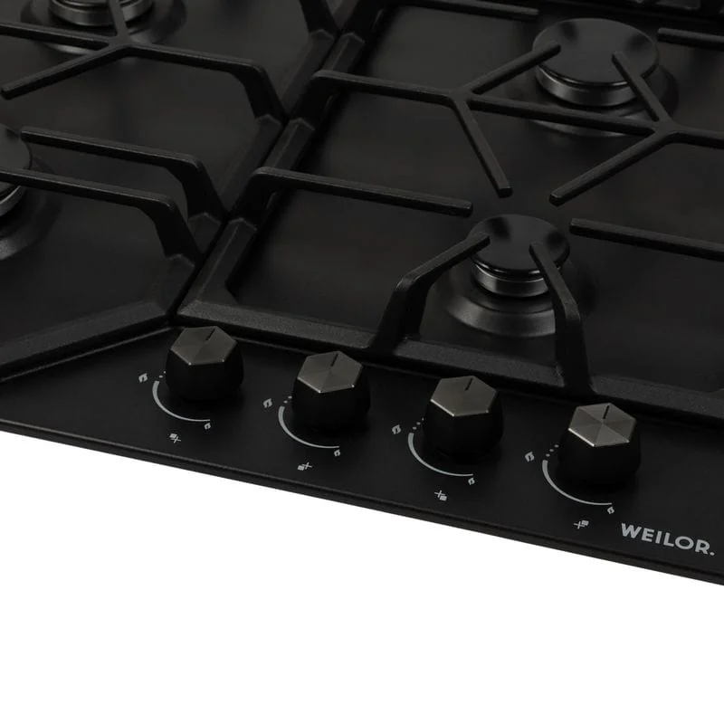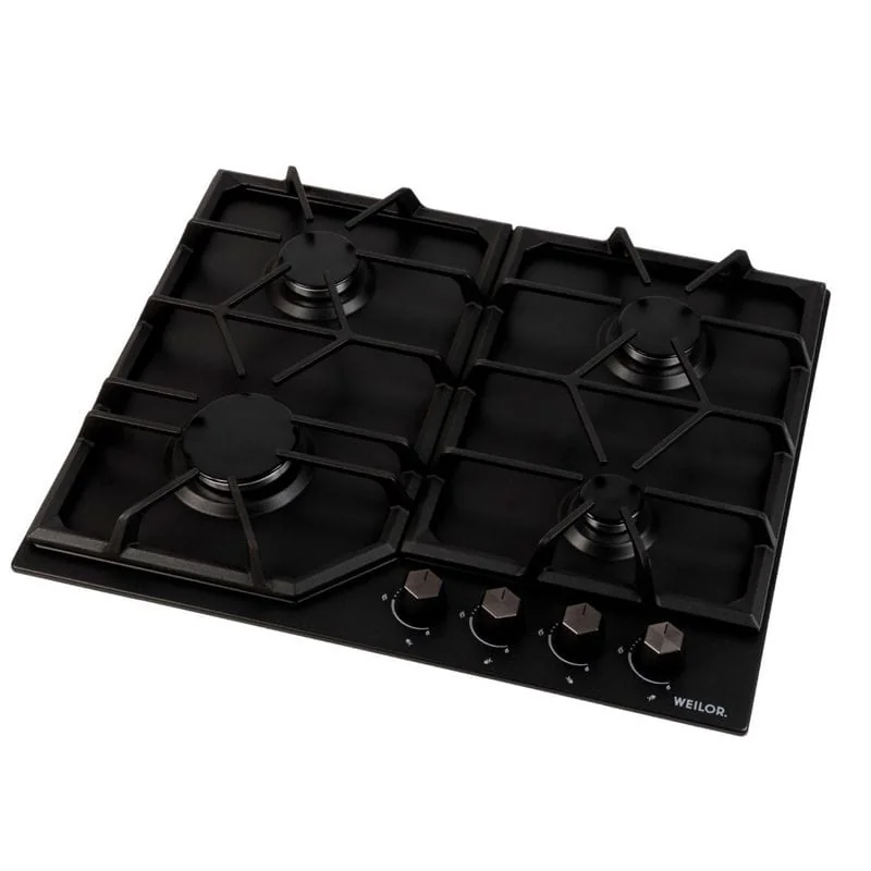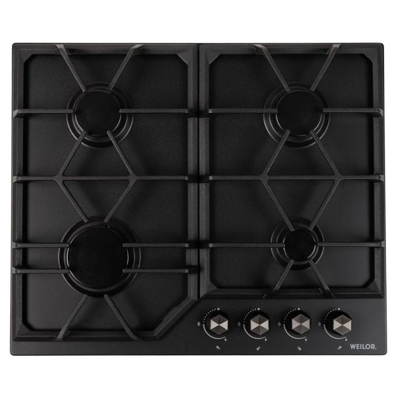 - Варочные поверхности Weilor оснащены системой «газ-контроль», которая автоматически блокирует подачу горючего вещества при отсутствии пламени и обеспечивает максимальную безопасность использования прибора.